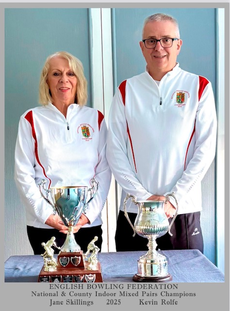 Jane Skillings and Kevin Rolfe: EBF National & County Indoor Mixed Pairs Champions |